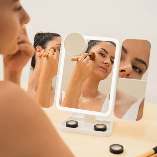Makeup Mirror with Magnification and LED Light Miled Rechargeable Triptych